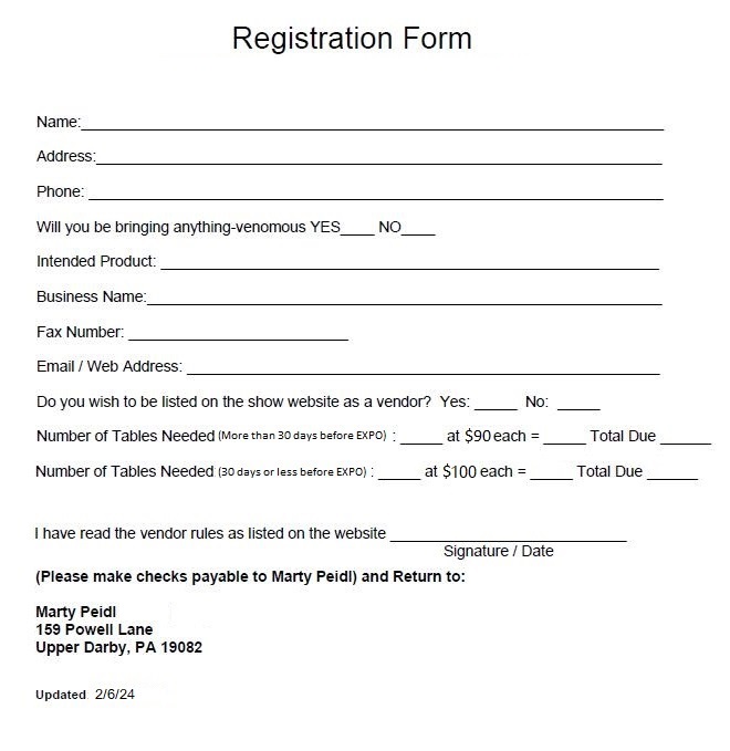 These rules are intended for the protection of you as the vendor, the buyer, the general public and the show. These rules are not flexible and will be enforced. Please help us to continue to allow venomous animals by following these few simple but necessary rules.